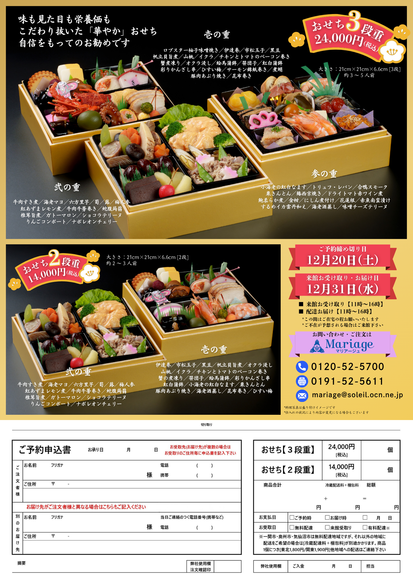 マリアージュのおせちは、味も見た目も栄養価も!こだわり抜いた「華やか」おせちです!